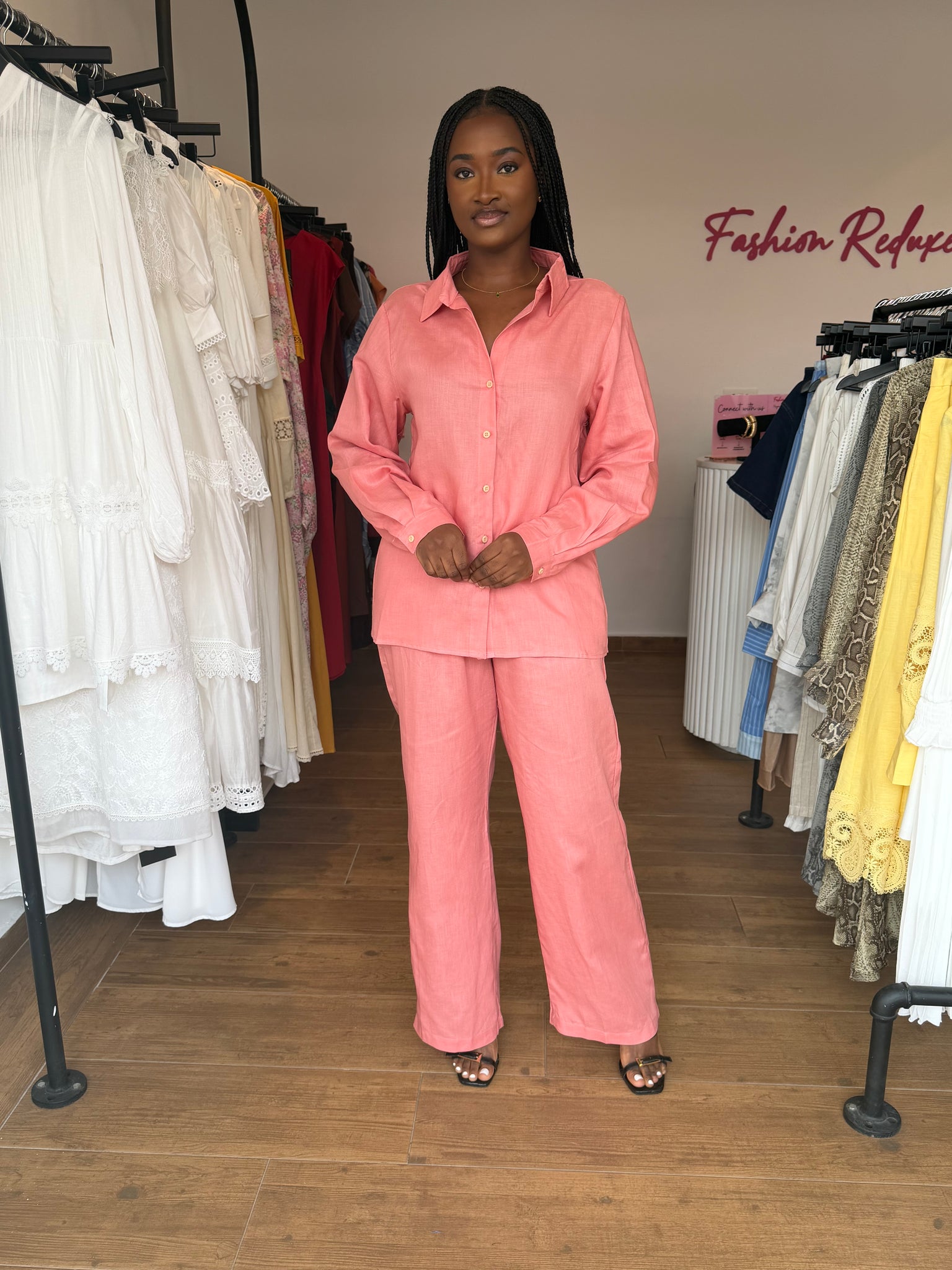 Peach linen longsleeves two piece